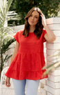 Adorne Ladies Britney Linen Top - Red / 10 is backordered and will ship as soon as it is back in stock.