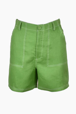 Adorne Ladies Gabriella Stitch Linen Shorts - Green