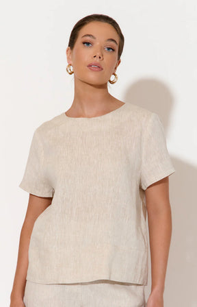 Adorne Ladies Kita Short Sleeved Button Back Linen Top in 2 Colours