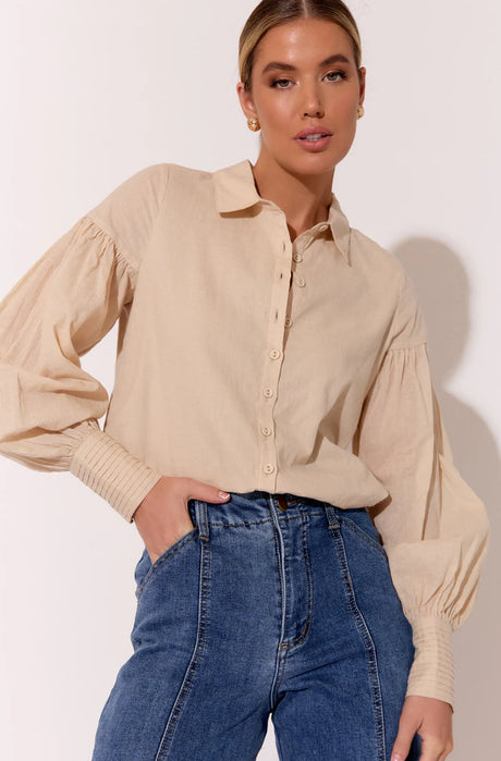 Adorne Ladies Esmeralda Linen Top - Khaki