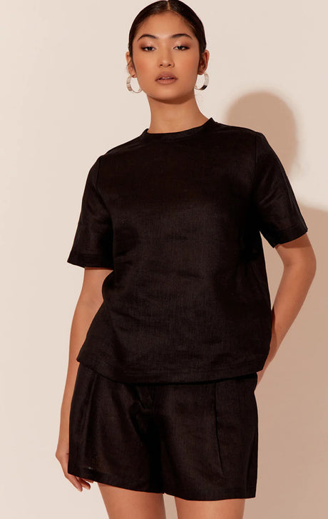 Sale price $59.95 AUD Regular price $79.95Unit price /Unavailable Adorne Ladies Kita Short Sleeved Button Back Linen Top in 2 Colours