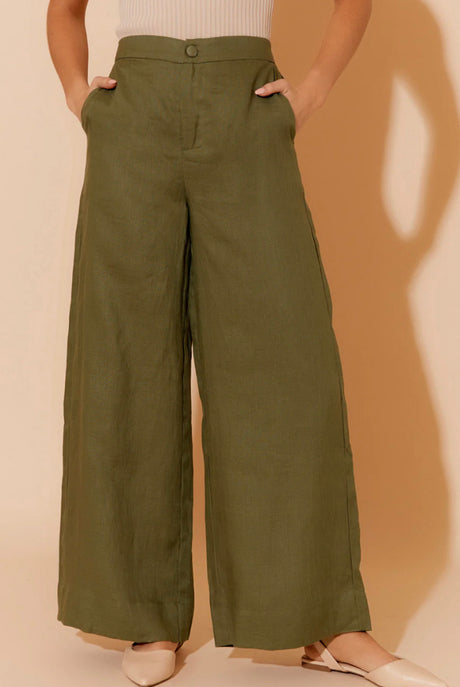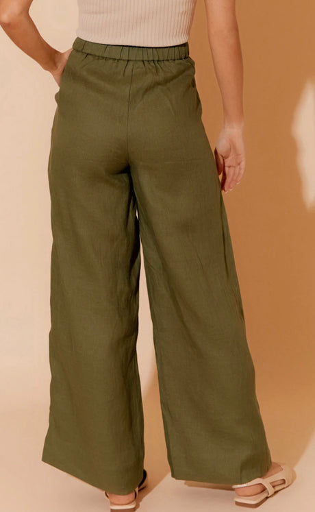 Adorne Ladies Harper Linen Pant - Khaki