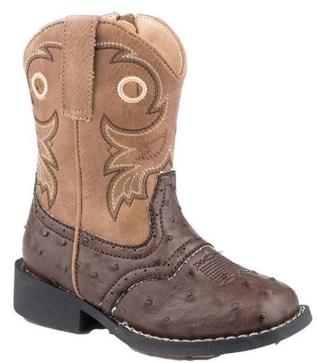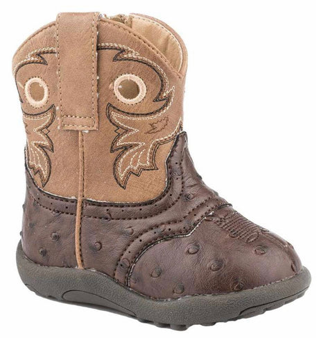 Roper Kids Boots in Daniel Brown Ostrich Tan Brown.