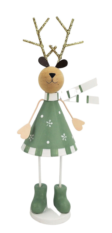 Cute Scandi Reindeer Standing Decoration in Red & Sage