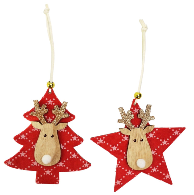 Cute Reindeer On Star & Tree Hanging Decoration.
