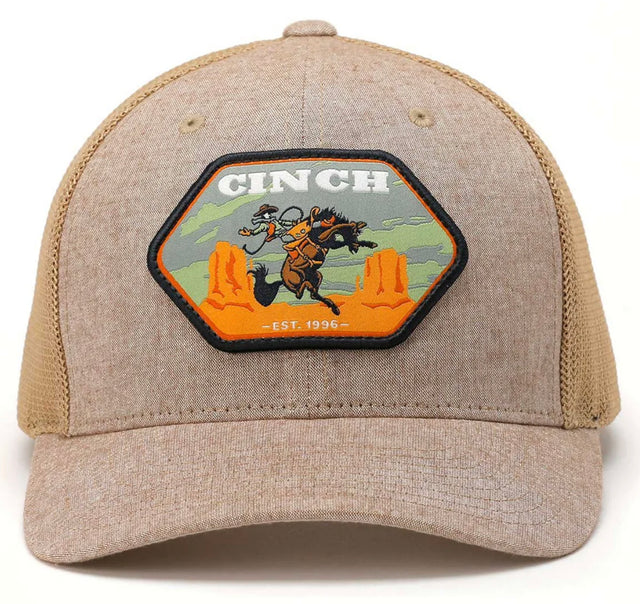 Every daily adventurer needs a mesh back trucker cap like this multicolor option by CINCH. A stylish way to protect your eyes and face from the sun, this versatile cap features a front panel logo patch and a convenient back snap closure.