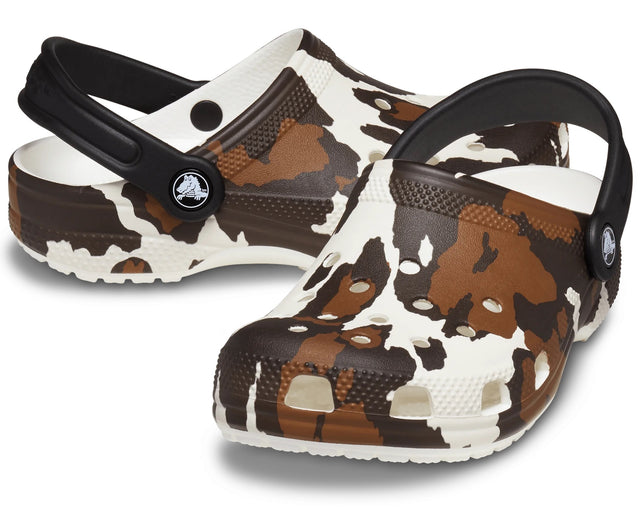 This version of the iconic clog features a fashionable cow print, helping you show off some fun, Western style. The stylish print is great for young fashionistas and farm lovers alike, and Croslite™ foam construction keeps them light and easy to wear. Grounded in comfort, spiked with personality.