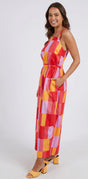 Bring A Pop Of Colour To Every Event In The Gorgeous Soleil Check Jumpsuit. Featuring An Exclusive Elm All Over Print Design This Fabulous Easy To Wear Jumpsuit Features A Flattering High Front With Bra Covering Strps And An Elastic Waist For Extra Comfort. Neckline. Add Some Cute Heels Or Your White Runners And Be The Life Of The Party!