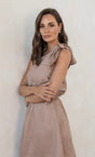 MJ is wearing a Size S. She usually wears a size AU8, is 173cm (5’7”) tall, with an 86cm bust (33.8”), 64cm (25.1”) waist & 89cm (35”) hips.