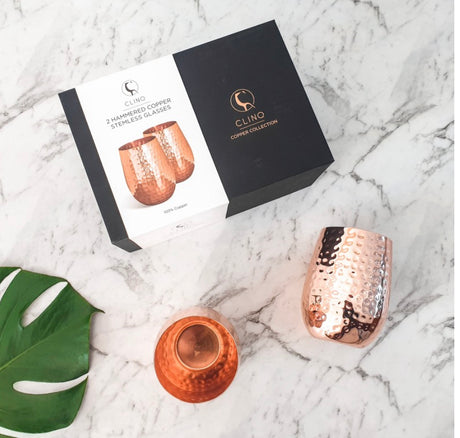 CLINQ Hammered Copper Stemless Glasses 2 Pack