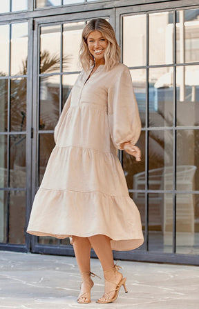 - Look effortlessly styled in our Chloey Tiered Long Dress, perfect for taking you anywhere you want to go, day or night!
