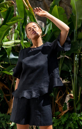 Adorne Ladies Sara Linen Top - Black