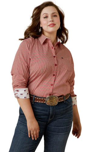 Ariat Ladies Kirby Red Check Shirt - XS is backordered and will ship as soon as it is back in stock.