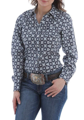 Cinch Ladies Navy Blue Patterned Shirt - XL is backordered and will ship as soon as it is back in stock.
