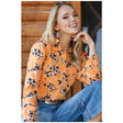 Cruel Women's Long Sleeve Orange Black Print Western Snap Shirt