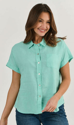 Enveloppe Linen Short Sleeved Shirt in Mint