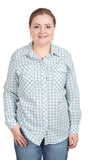 Just Country Ladies Abbey shirts in 2 colour ways. - Dusty Turquoise / LARGE is backordered and will ship as soon as it is back in stock.