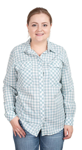 Just Country Ladies Abbey shirts in 2 colour ways. - Dusty Turquoise / XLARGE is backordered and will ship as soon as it is back in stock.