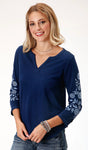 Roper Ladies Studio West Collection 3/4 Sleeve Tee in Navy 38513370