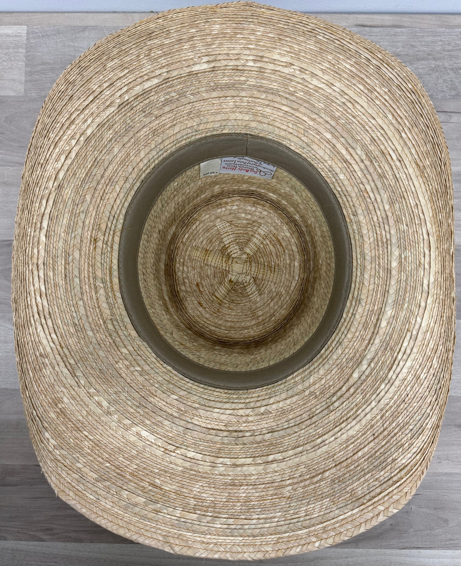 Natural oak-colored Guatemalan standard palm hat, 4 1/2" brim (shown). Reata crease.- Sweatband: foam-padded cotton twill with non-woven backing