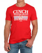 CINCH has the goods! Check out our cowboy-approved red crew neck tee shirt for pairing with blue jeans and boots. This comfortable tee features cotton construction and a front screen print.