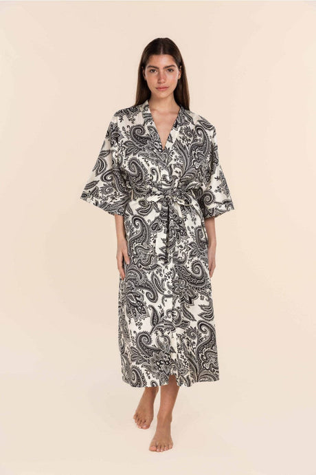 Regular price $139.95 AUDUnit price /UnavailableGingerlilly Cotton Sateen Print Robe - Annie B&W Paisley