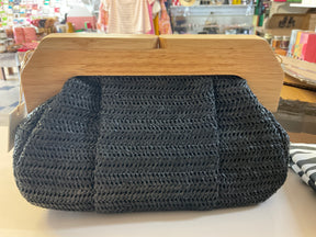 Adorne Black Clutches - Renata Pleat Timber Frame Clutch is backordered and will ship as soon as it is back in stock.