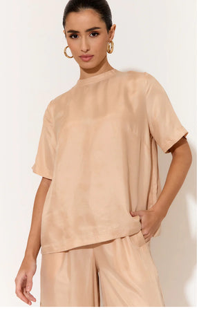 Adorne Ladies Arden Cupro Top in Camel - 8 is backordered and will ship as soon as it is back in stock.