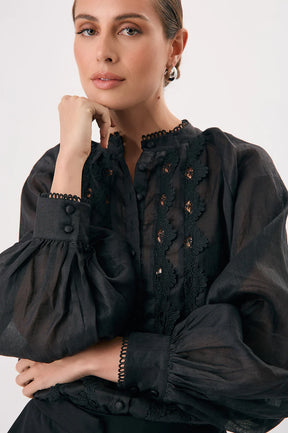 Adorne Ladies Darcy Lace Detail Ramie Shirt - Black