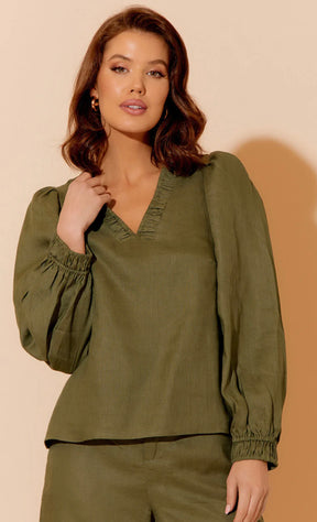 Adorne Ladies Esmeralda Linen Top - Khaki
