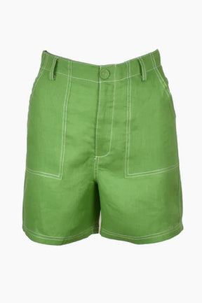 Adorne Ladies Gabriella Stitch Linen Shorts - Green