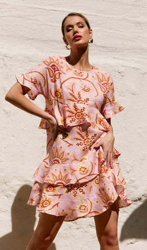- Keep it colourful in our Lozzy Ruffle Printed Linen Dress, pair with some cute sneakers or flats for a casual weekend look or up style with some statement earrings and heels for a night out!