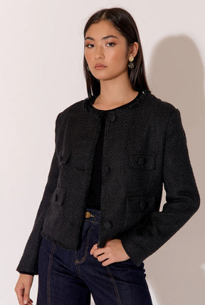 Adorne Ladies Michaela Tweed Jacket in Black - 8 is backordered and will ship as soon as it is back in stock.