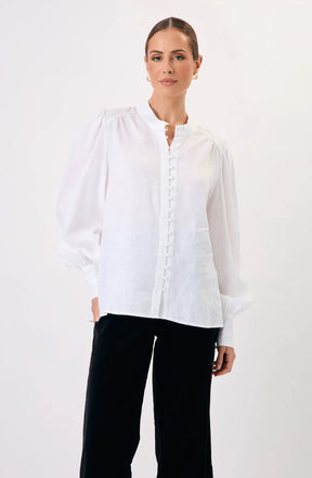 Adorne Ladies Samantha Linen Shirt White