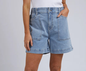 Your Go-To Denim Shorts! Featuring An Elastic Back, These Stretch Denim Shorts Have Front Patch Pockets And All The Elm Denim Bells & Whistles For The Ultimate In Denim Comfort.