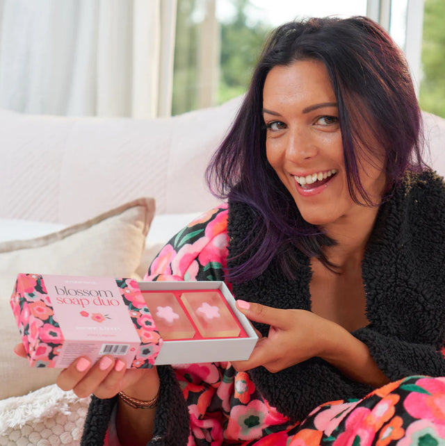 This pretty Blossom Soap Duo makes a great gift idea for Mum this Mother’s Day. Deliciously scented with jasmine and honey, the clear glycerine soap will transform any daily routine into a luxurious escape. The gentle cleansing formula is enriched with nourishing ingredients to leave skin feeling soft and subtle. Each 60g soap features a pink flower shape in the centre. Too cute! Luxe gift box design is part of our Mother’s Day range for an easy gift idea. Box Size: 13cm x 9.5cm