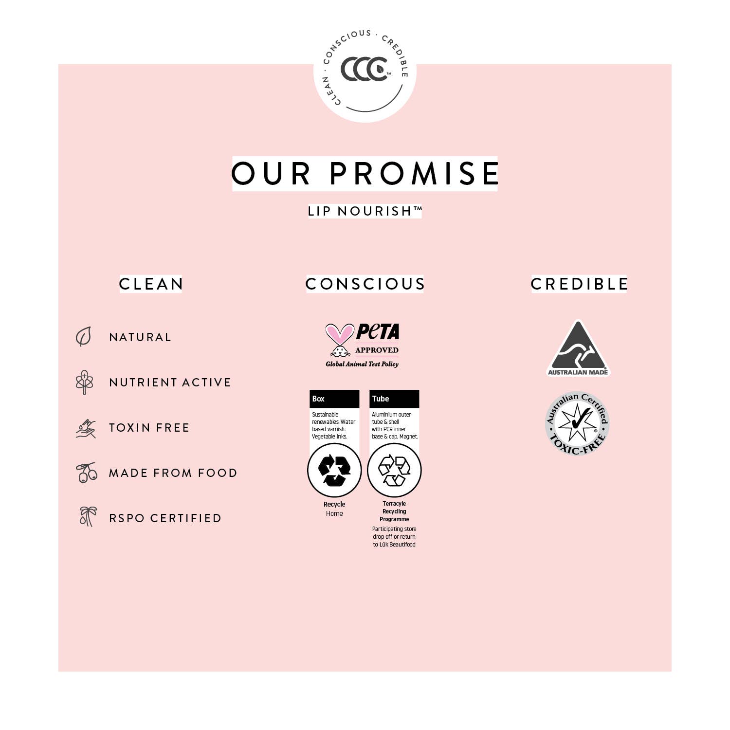 Enjoy a cracker season with our thoughtfully priced beauty gift suitable for all ages and complexions. WHAT IS IT Bon Bon's are a timeless favourite to celebrate the season, these impulse-friendly lip treats offer exceptional value with a strong sell-through history. You can ‘pop’ a little playful fun with three beloved universally flattering tints. Full sized boxed Lip Nourish™ is nestled in festive packaging ready wrapped with ribbons and gift tag ready to add a message. Gift ready and ideal for table décor, secret santa, the ultimate stocking stuffer, or sweet, spontaneous gifts. Great Value, Easy Gifting. WHAT IT DOES Guava Blush is n inviting shine and hint of tint with intense hydration for soft, luminous lips. Soft pink. Barely there coverage. Dewy satin finish. Tastes of florals & citrus. • Delivers both joy and value — naturally! •