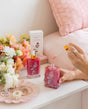 Our Summer Solstice Body Oil has been Barbie-fied and is now available in this gorgeous pink shimmer version. It keeps the same delicate floral scent that you know and love, with beautiful ylang ylang, grapefruit, mandarin and sweet orange essential oils. Deeply hydrates skin while leaving a pearlescent, illuminated soft glow that works well with all skin types. Can also be used in the bath. Make sure to regularly shake this product before use to get the most out of it's glittery magic.