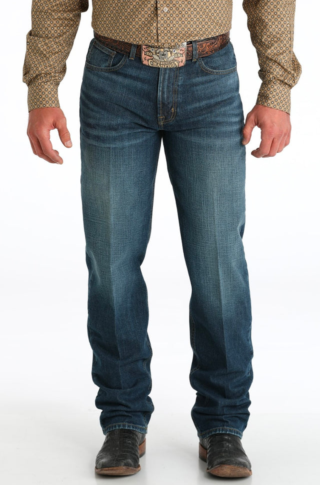 Cinch FastBack Loose Original Rise Boot Cut w/Leg Slits in Dark Wash - 28 / 36 is backordered and will ship as soon as it is back in stock.