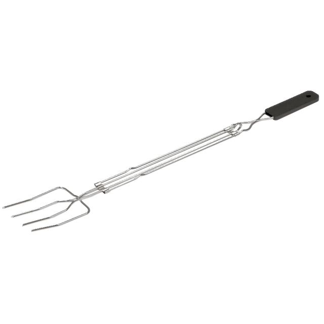 Equipped with four prongs, this extension fork allows you to flame-grill with ease. It’s also ideal for roasting multiple marshmallows over an open fire. Featuring an extendable shaft for convenient storage and to keep a safe distance from flames, it includes a plastic handle to protect your hands from heat. The chrome-plated finish ensures effortless cleaning.
