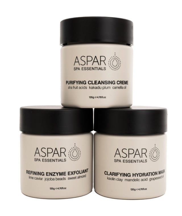 ASPAR botanical facial essentials was formulated by therapists for use in spa treatments to provide visibly noticeable results after just one use.